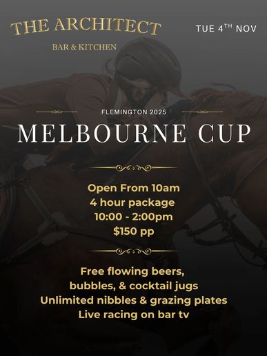 Get race-day ready in style! Join us at The Architect for Flemington 2025 – Melbourne Cup with an exclusive 4-hour all-inclusive package.